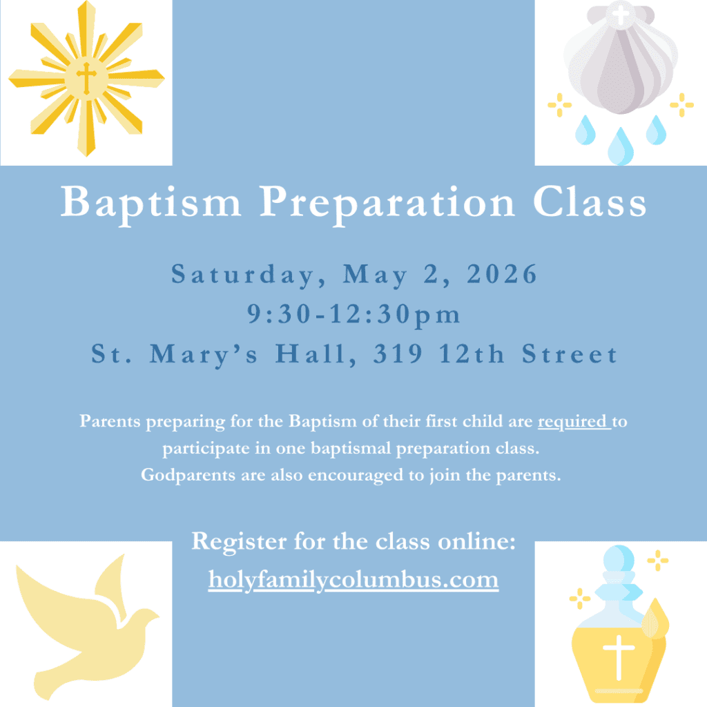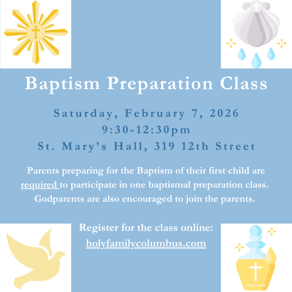If you are a parent interested in having your child receive the Sacrament of Baptism, please review the attached information: