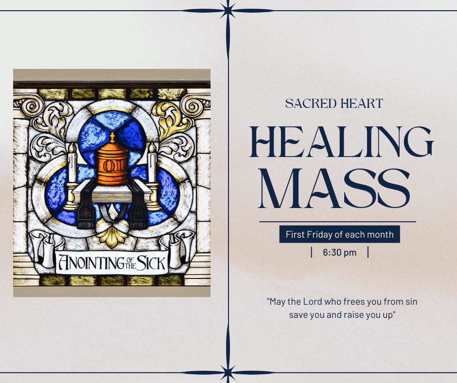 First Friday of every month-6:30 PM-Healing Mass. This Mass includes Anointing for the Sick.